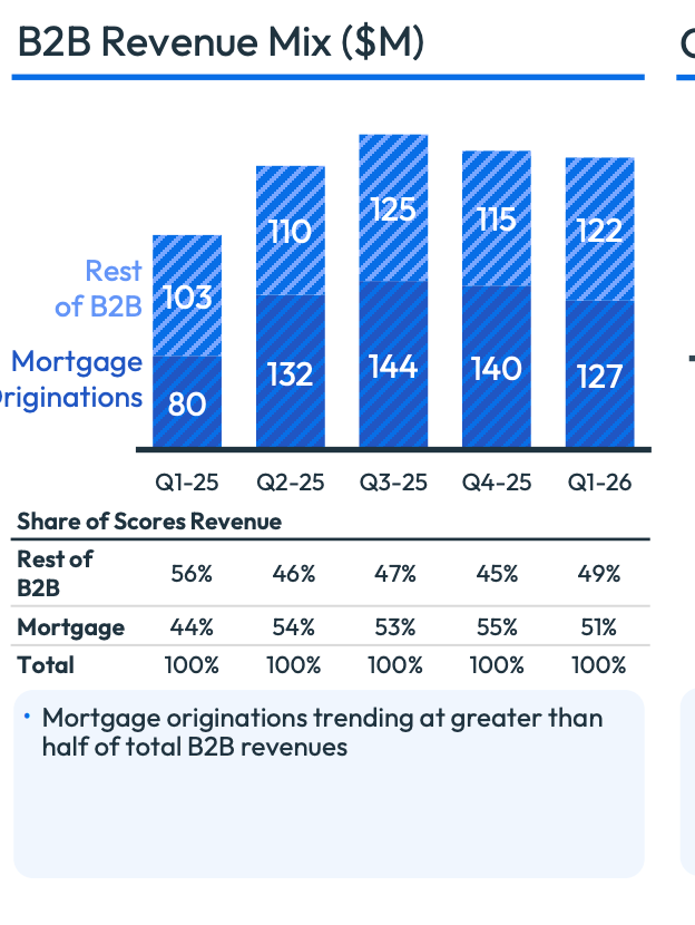 But this has been a big driver of their business. Mortgage as % of B2B revenue were just 24% in 4Q23 (which is after it was up 147% in the quarter from the price change).