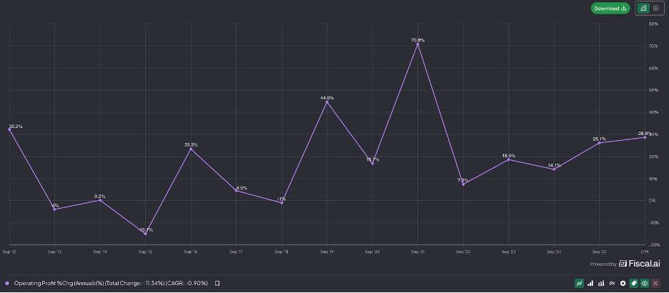 Operating profits have grown, much more though, as most of that revenue growth has been in the very high margin Scores segment.