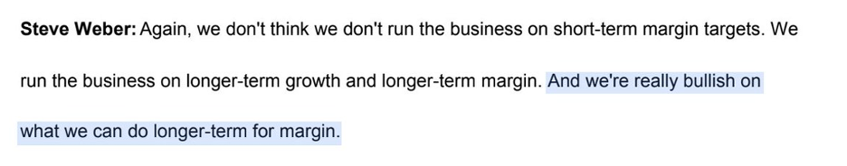 CFO Steve Weber is “really bullish on longer-term margins”.