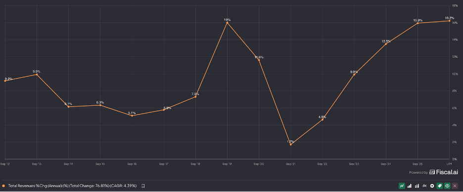 It is worth keeping in mind that revenue growth has only more recently been this strong (mid-teens) on the price hikes.