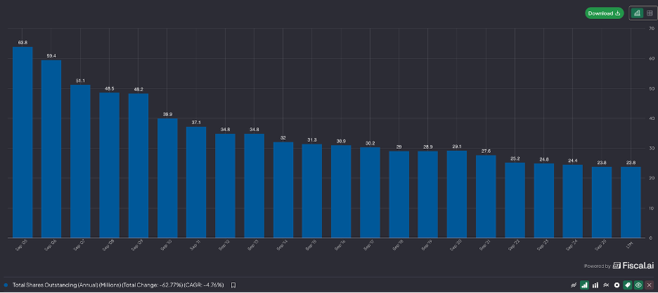 They have reduced their share count by 63% since 2006.