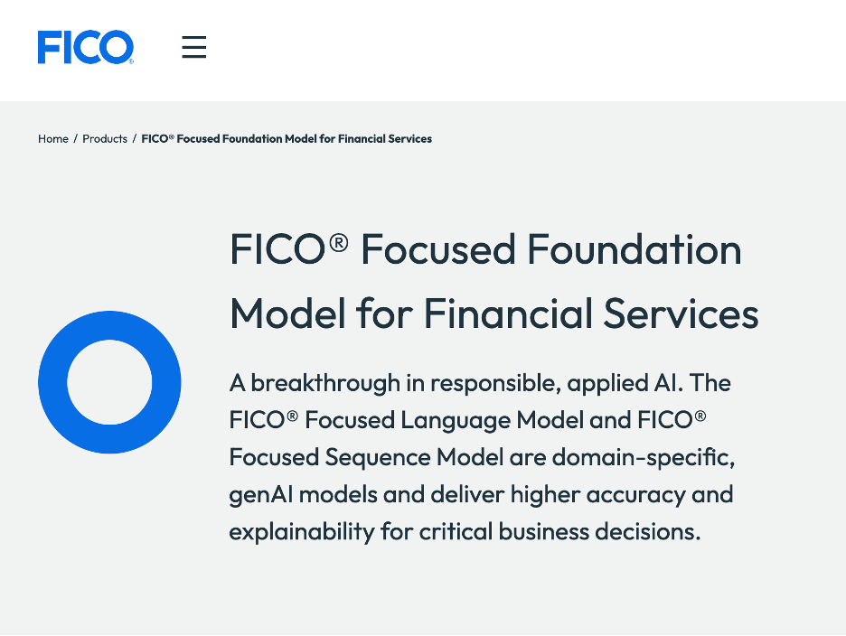 They have the FICO Foundation Model for Financial Services (FFM) which is designed to be less compute intensive, eliminate hallucinations, and is trained on domain-specific financial data. It also provides audit trails.