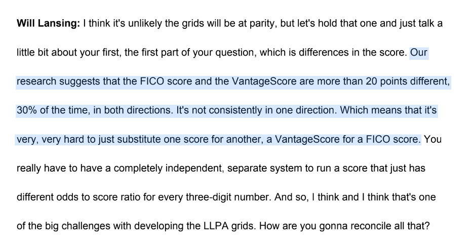 Plus a slew of fintechs have new models of gauging credit risk default, so isn’t the FICO score a bit antiquated?