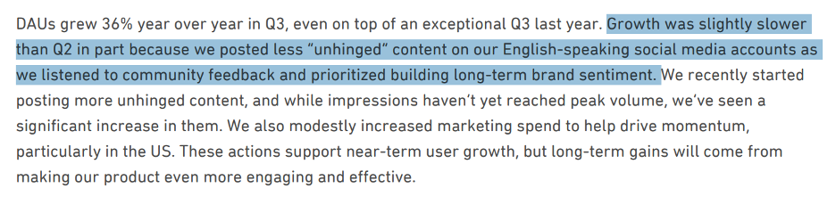 2) Posting less “unhinged” marketing content to avoid hurting the brand