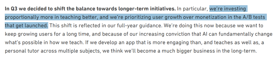 CEO Luis von Ahn said in their investor letter that they are focusing on long-term growth.