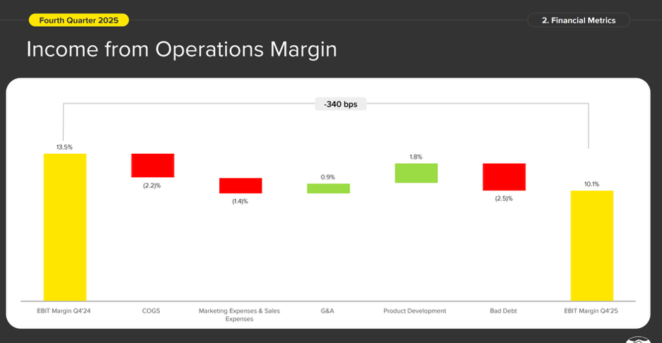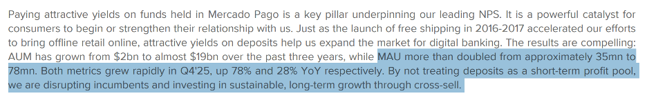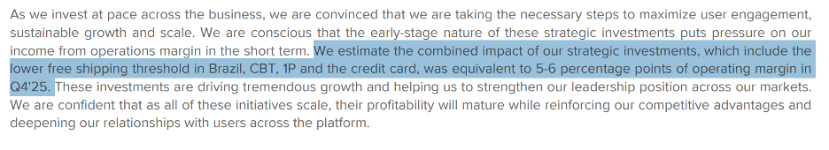 As they noted in the 4Q25 shareholder letter: “Unit shipping costs in local currency fell 11% y/y in Brazil in Q4'25, and fell y/y in fulfillment in Brazil, Mexico, Chile and Colombia.”