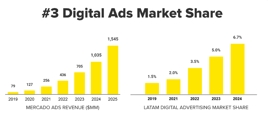 The biggest part of their advertising today though is simple sponsored search ads on the Mercado Libre marketplace. Advertising is now a >$1.5 billion business for them.