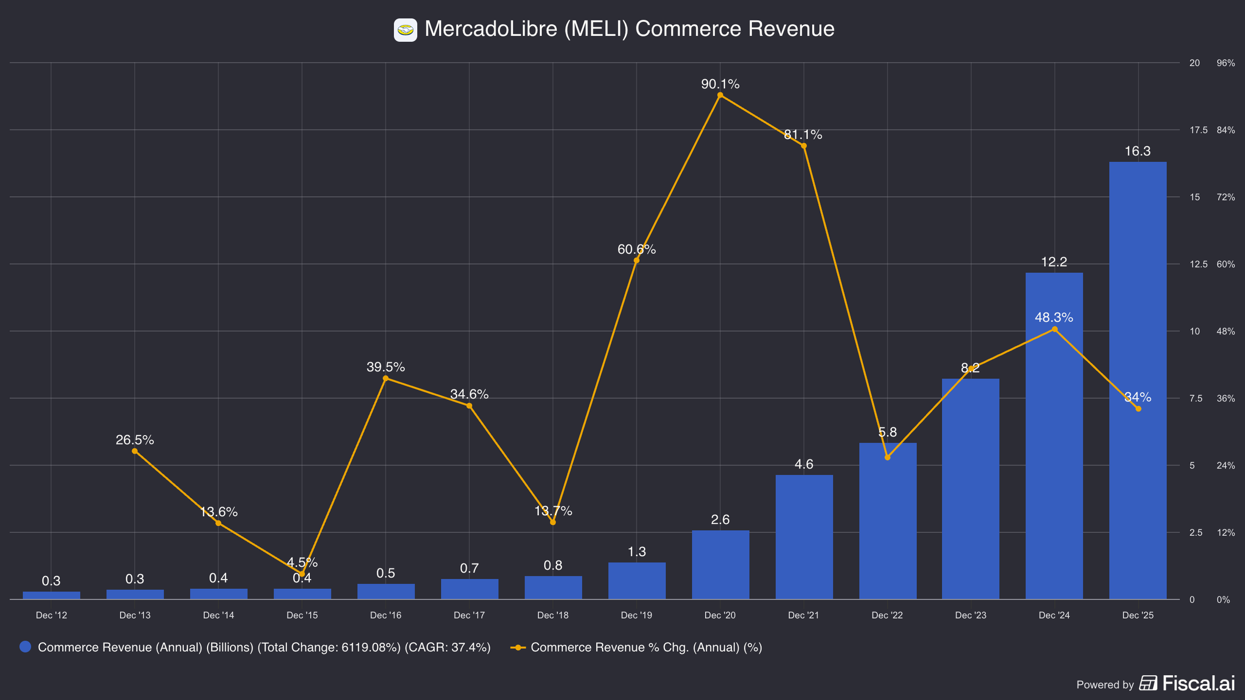Commerce generated $16.3bn in revenues, growing 34% y/y
