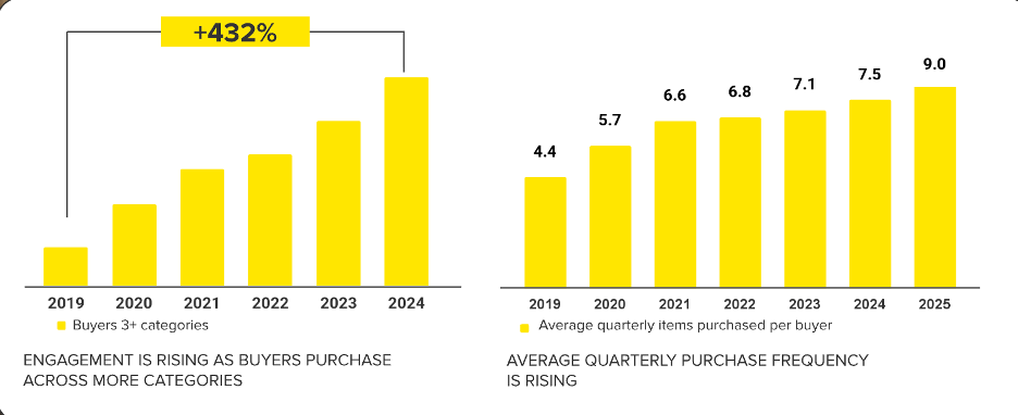 This has resulted in more buyers and growth in how many buyers purchase across 3 categories, as well as purchase frequency.