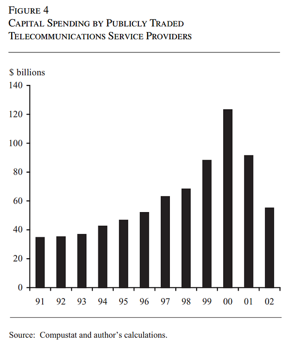 If we rewind to the late 90s, there was 39 million miles of fiber optic cable laid costing an estimated $90 billion. In total it was estimated that $500 billion was spent on infrastructure investment during this period.