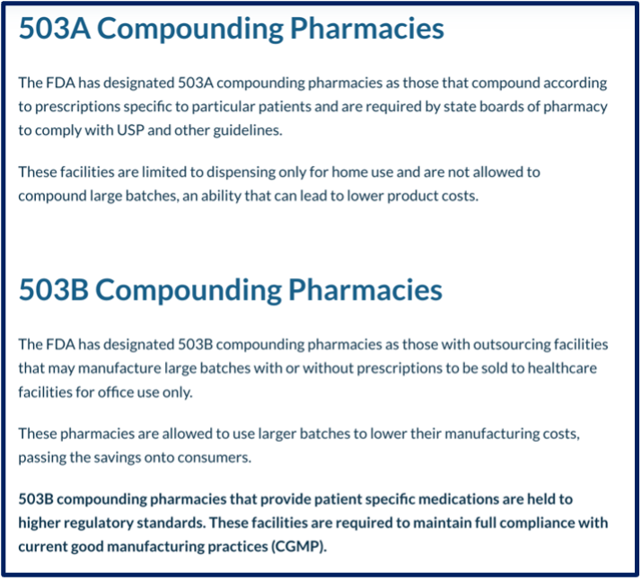 The FDA enacted sections 503A and 503B which allowed pharmacies to create compound drugs that are molecularly similar in order to meet this demand.