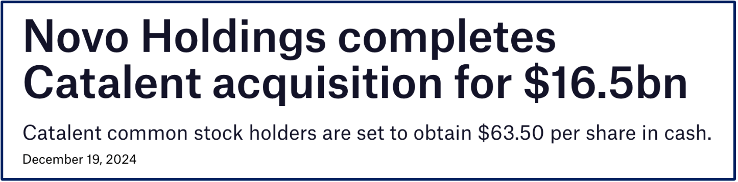 In order to ramp up production, Novo Holdings (which owns 28% of Novo Nordisk, but 77% of the votes), made a $16.5 billion acquisition of Catalent, which is a contract development and manufacturing organization.