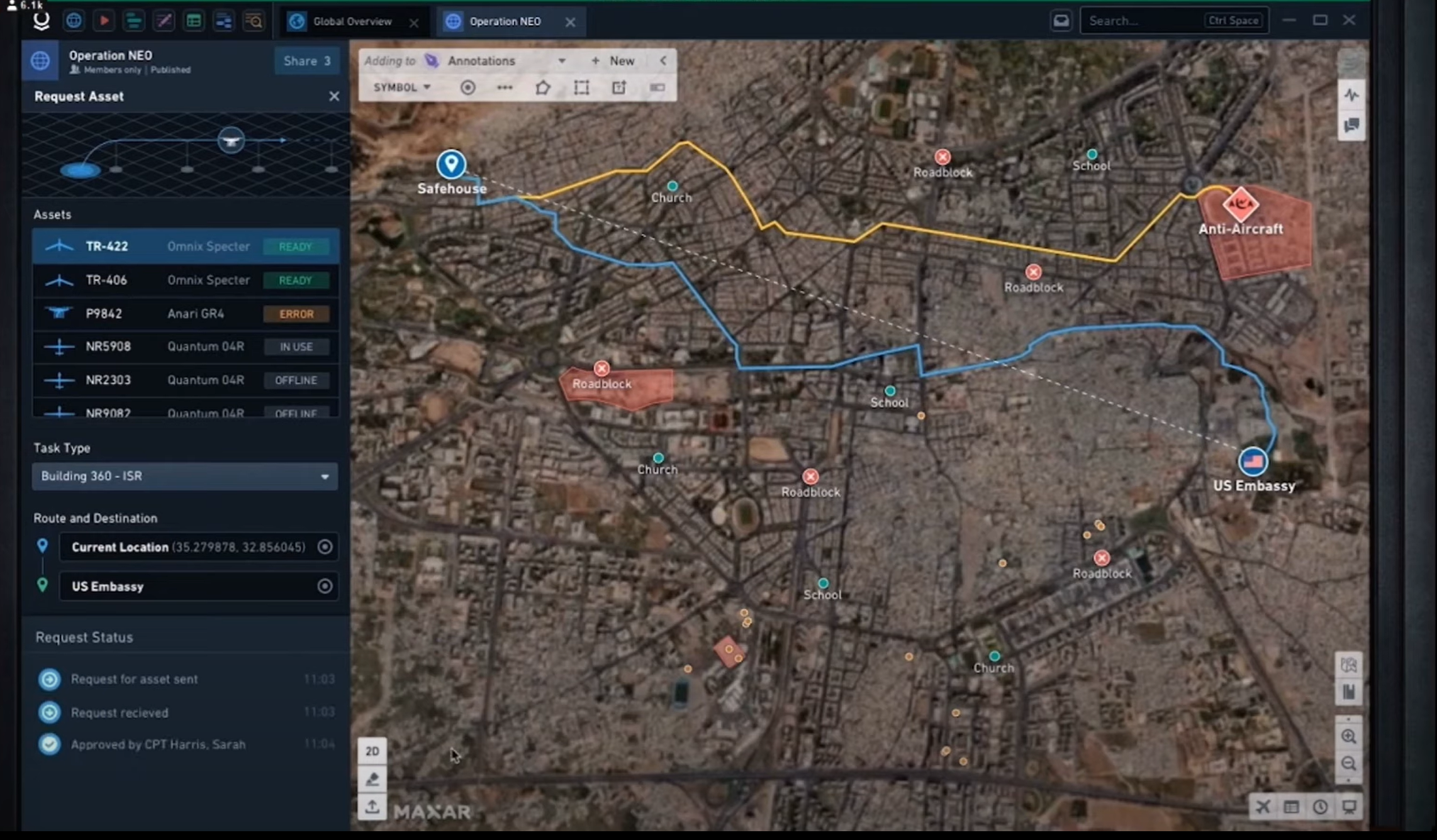 It is almost like Google Maps, but with the live positions of aircraft, ships, drones, and other assets all mapped together.