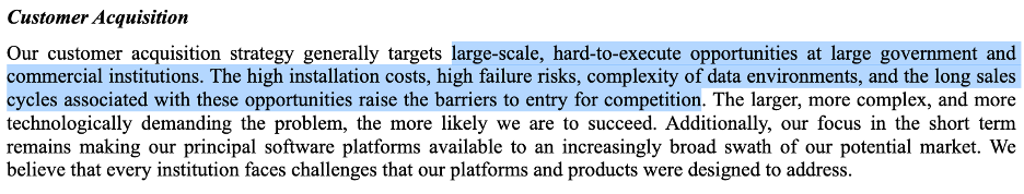 In total they have just 954 customers, so they tilt heavily toward large enterprises and governments.
