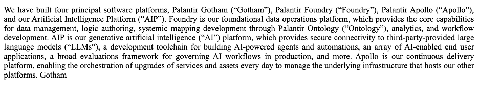 · Palantir’s platform for government, defense, and intelligence customers (but doesn’t necessarily need to be restricted to them).