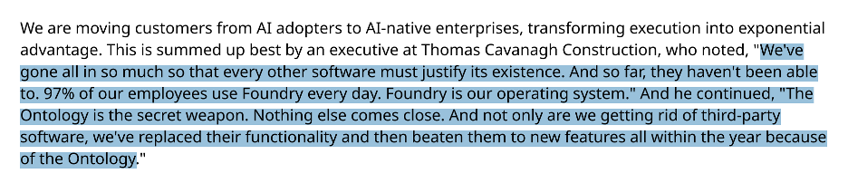 And since they have a platform to create their own software, plus the FDEs to help a business do so, they often are able to create products that replace existing solutions.