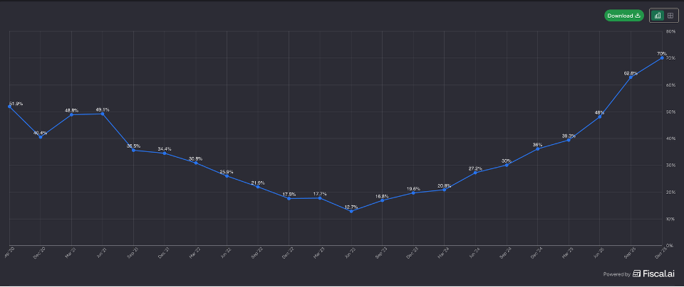 All of this topline growth improved margins, which hit 41% in 4Q25, up 21 points y/y.