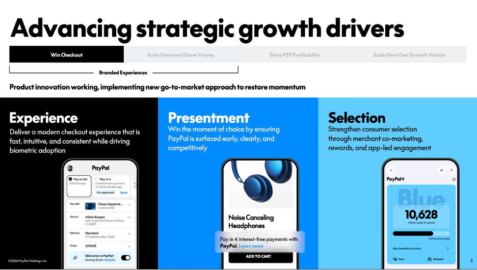 Even though branded checkout growth slowed to 1% in the last quarter, which is dangerously close to contracting, these new initiatives should improve this.