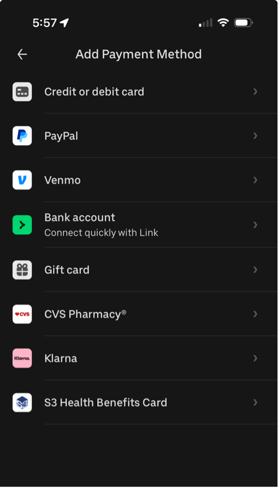 Below you see that PayPal (and Venmo) are pay options on Uber.