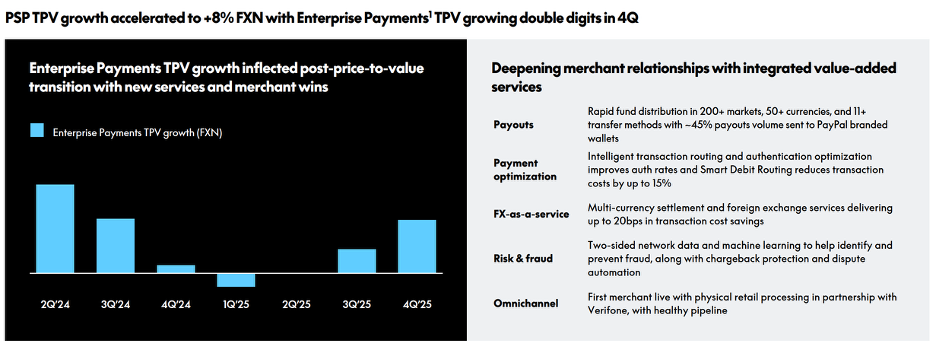 They also had this slide in their 4Q earnings, which shows enterprise payments returning back to growth after a reset (enterprise is primarily served by the PSP business).