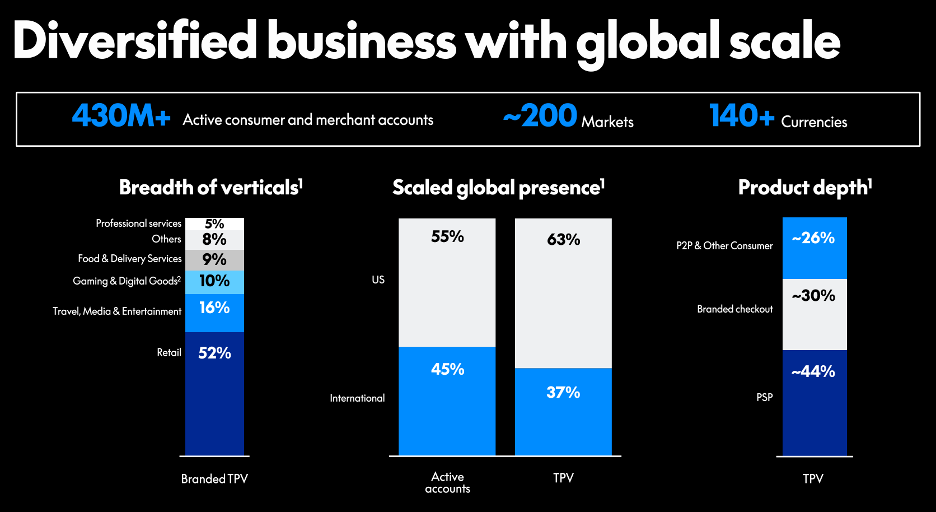 First, we will start with a breakdown of their business. Many are probably familiar with their PayPal checkout button, but did you know they process payments for Uber, Airbnb, and Spotify too?