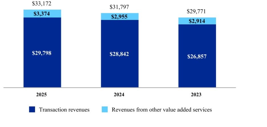 In total PayPal has revenues of $33.1 billion and splits it up between transaction revenue and “value added services”.