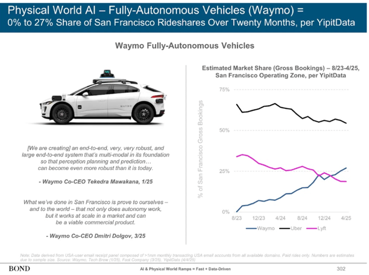 Right now in the cities that Waymo focuses most on (i.e. San Francisco and Los Angeles), they have gained market share at Uber’s and Lyft’s expense.