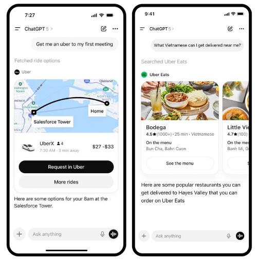 Instead of booking an Uber yourself, you just talk to ChatGPT or Gemini and tell it to book you a ride. It then goes and does it for you without you ever opening an app.