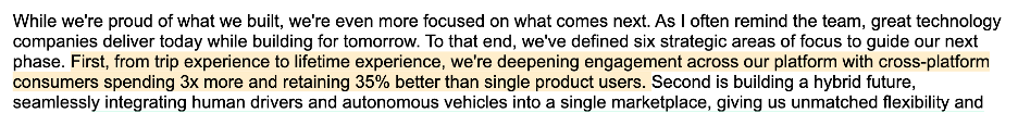 In 3Q25, Uber noted that users that use the two services spend 3x more and have 35% higher retention.