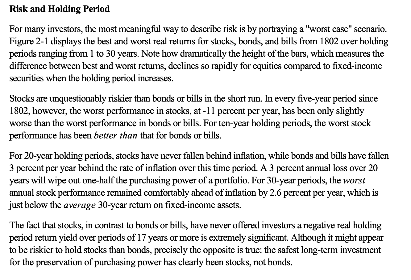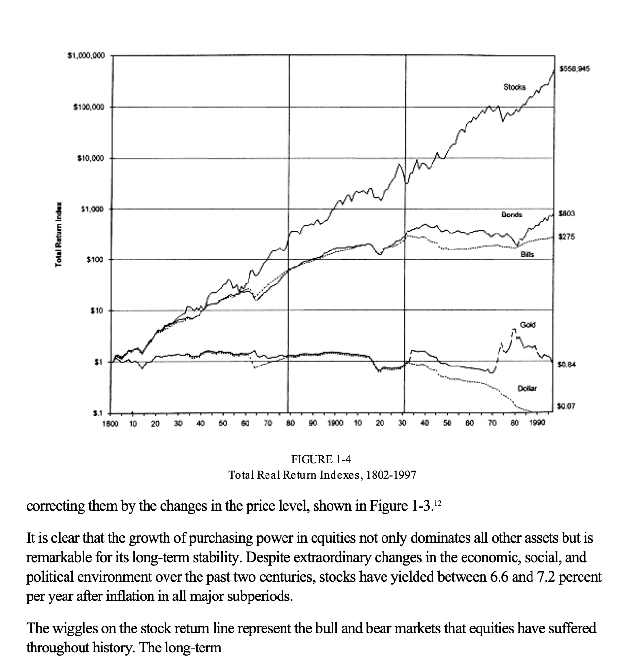 In the book, Stocks for the Long Run by Jeremy Siegel, he found that stocks in contrast to bonds over that same period, actually gain 2.6% in real terms.
